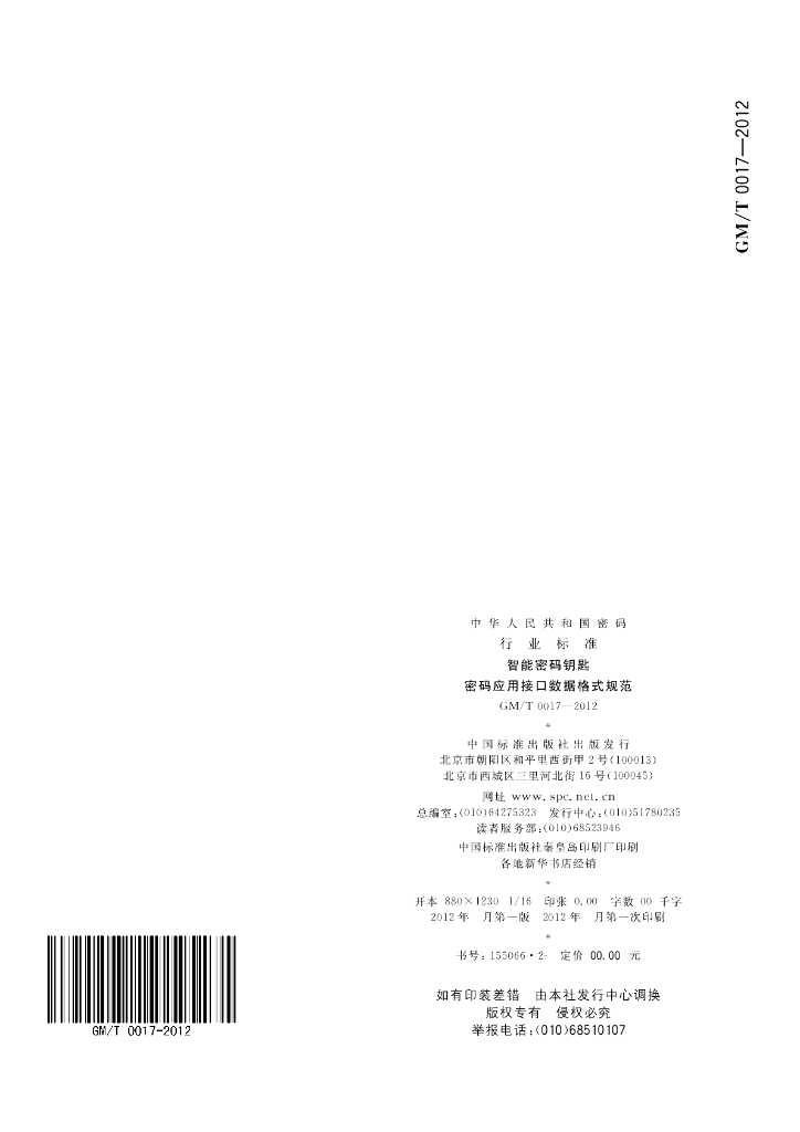 GM/T 0017-2012 智能密码钥匙密码应用接口数据格式规范