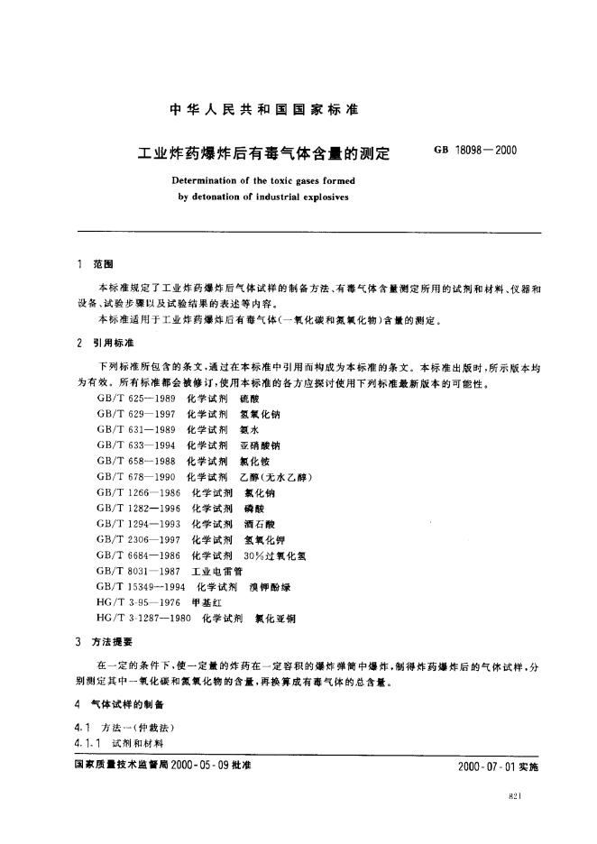 WJ/T 1977-1990 工业炸药爆炸后有毒气体含量测定法