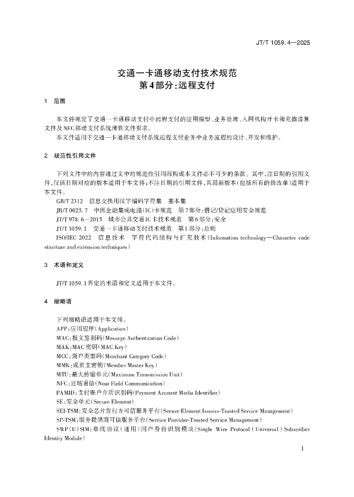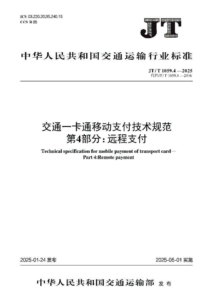 JT/T 1059.4-2025 交通一卡通移动支付技术规范 第4部分:远程支付