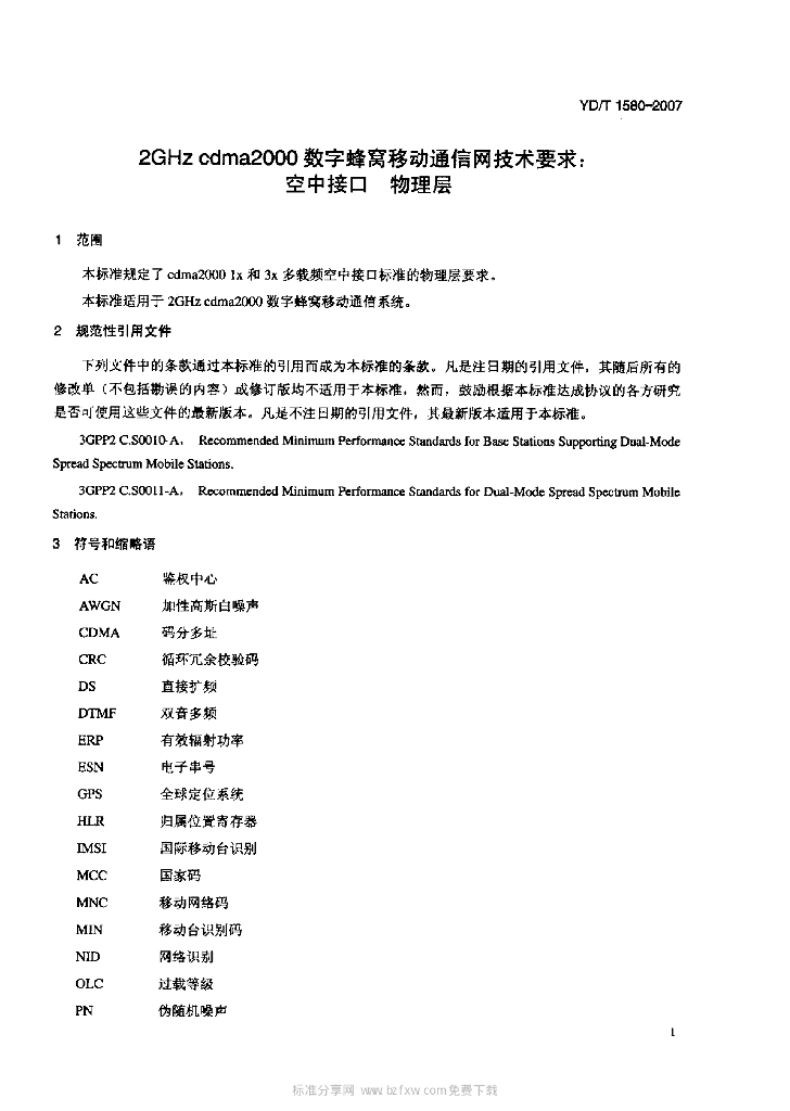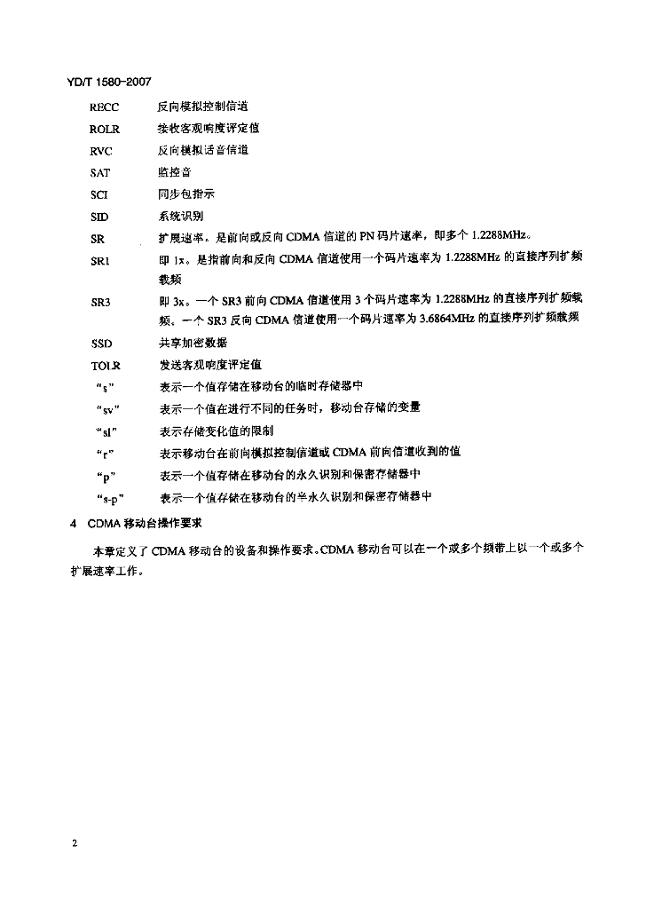 YD/T 1580-2007 2GHz cdma2000 数字蜂窝移动通信网技术要求:空中接口物理层