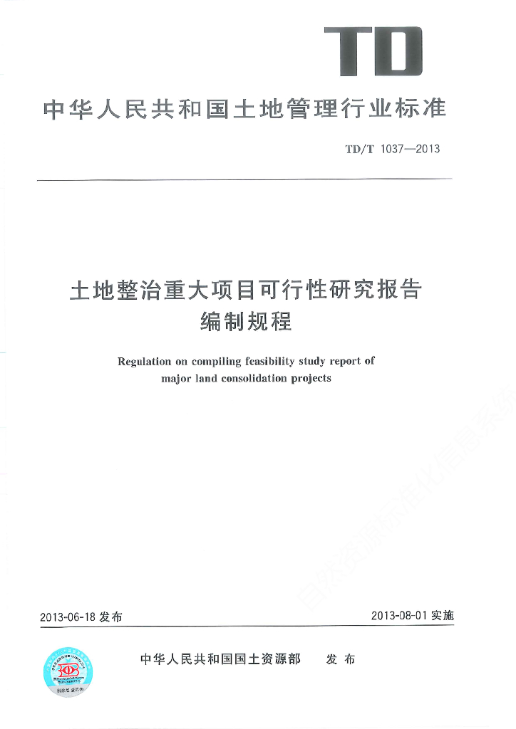 TD/T 1037-2013 土地整治重大项目可行性研究报告编制规程