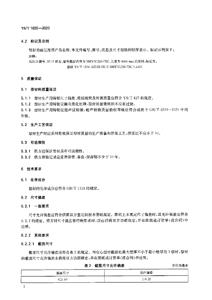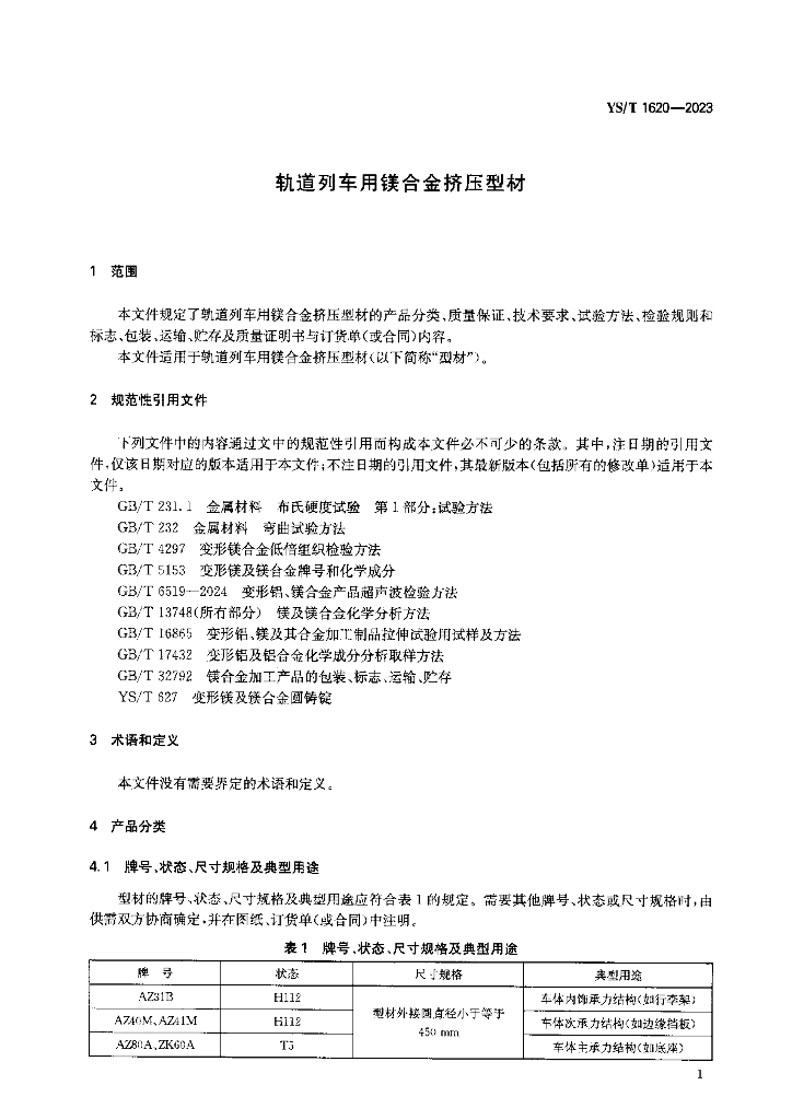 YS/T 1620-2023 轨道列车用镁合金挤压型材