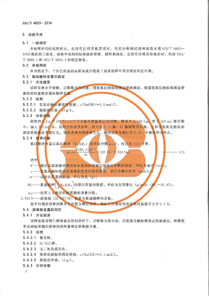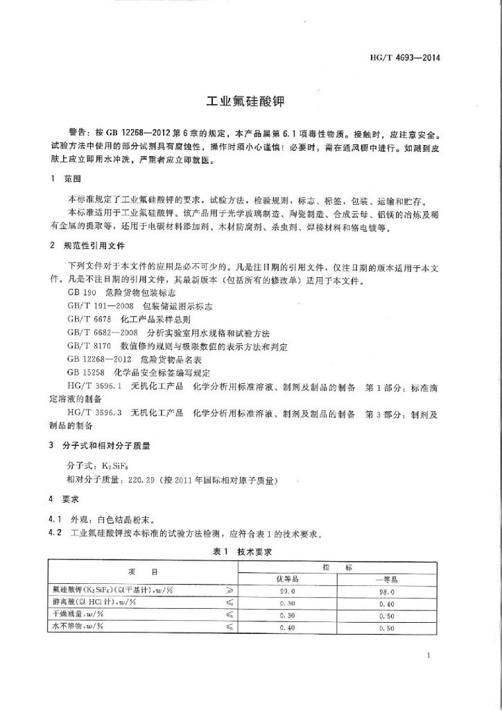 HG/T 4693-2014 工业氟硅酸钾