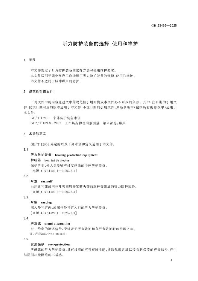 GB 23466-2025 听力防护装备的选择、使用和维护