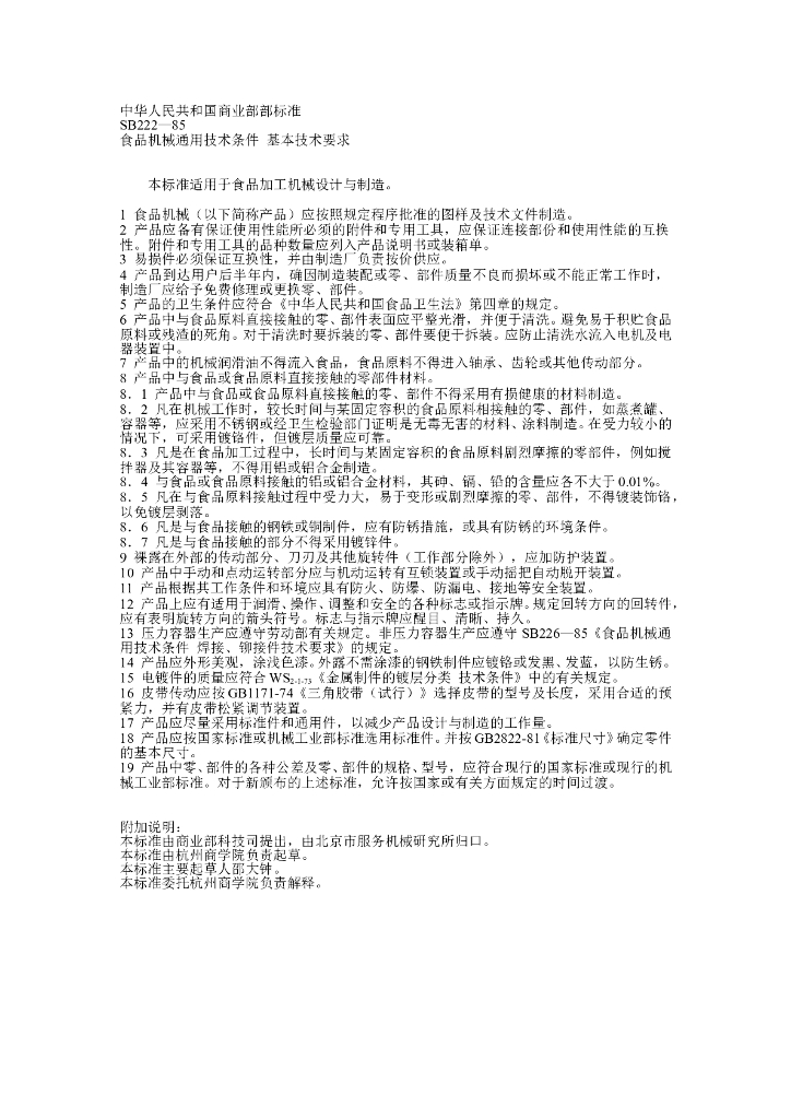 SB 222-1985 食品机械通用技术条件 基本技术要求
