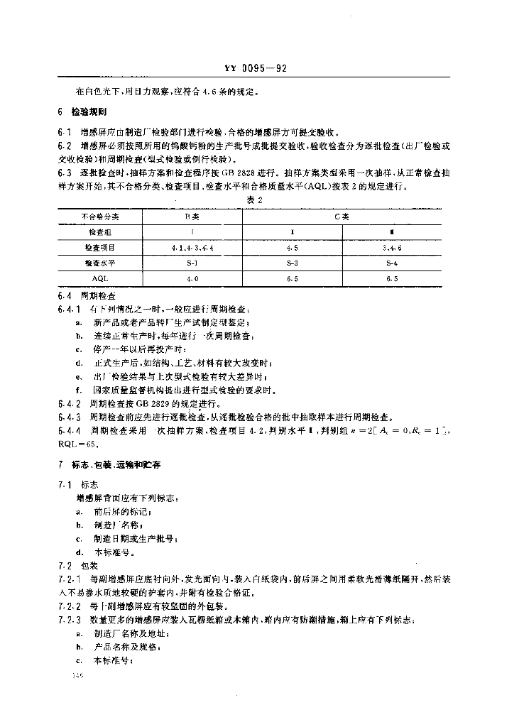YY 0095-1992 钨酸钙中速医用增感屏