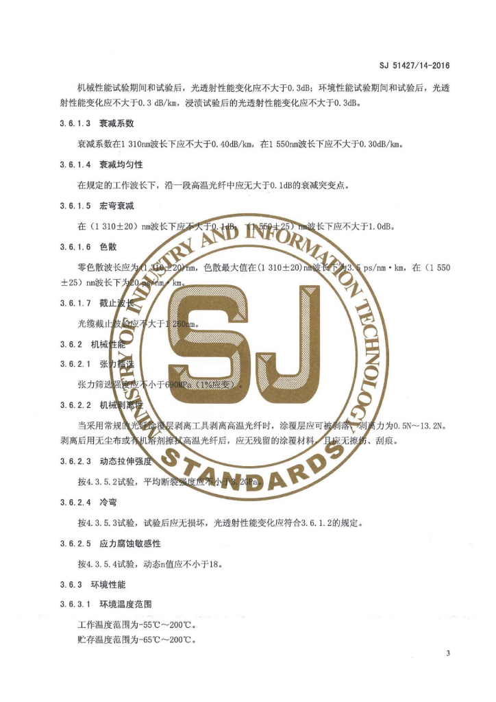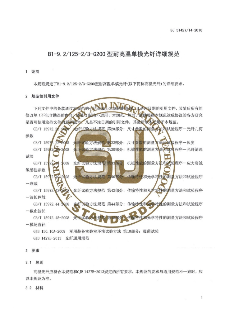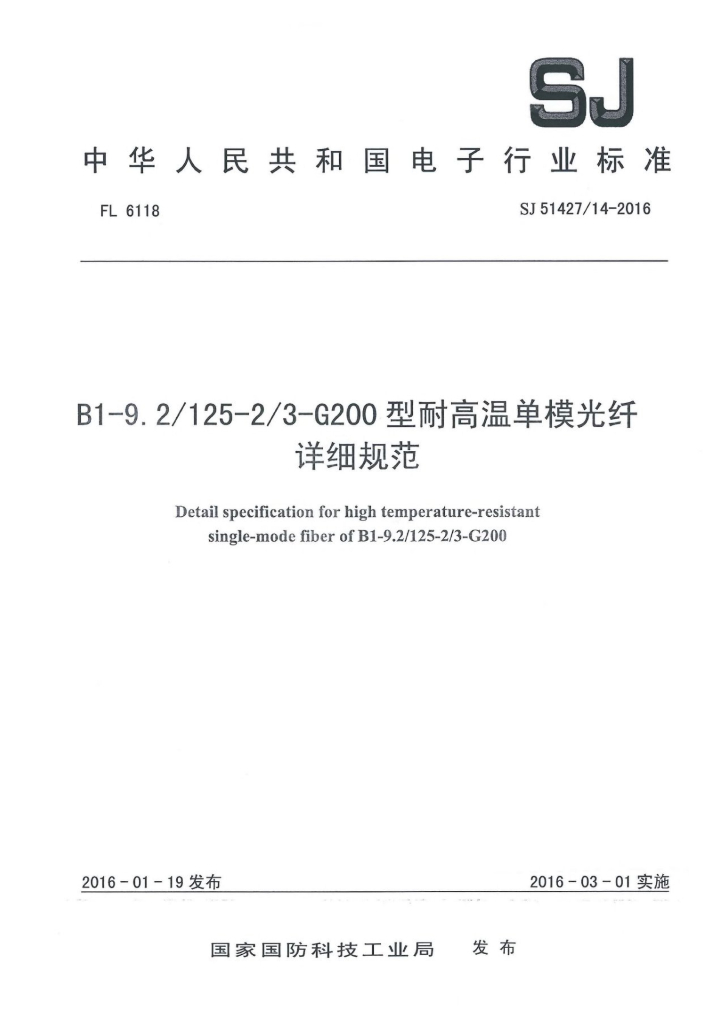 SJ 51427/14-2016 B1-9.2/125-2/3-G200型耐高温单模光纤详细规范