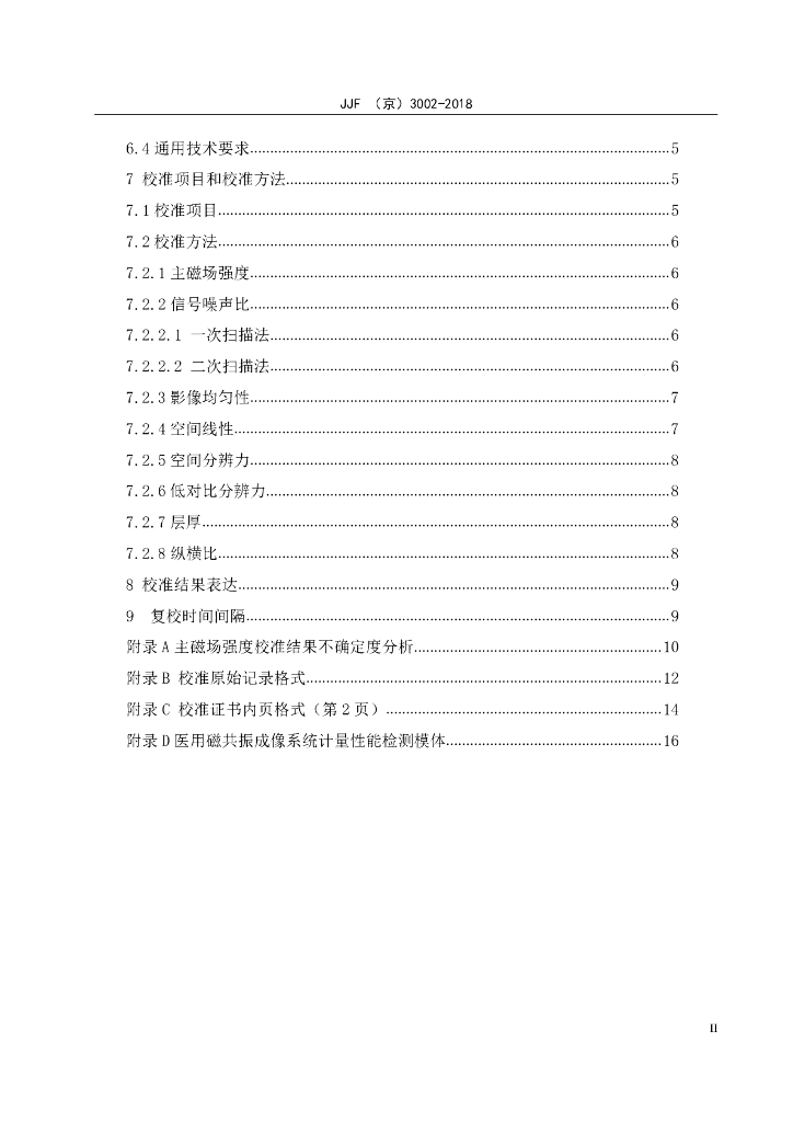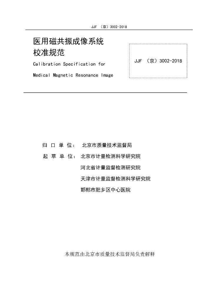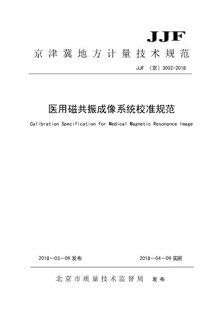 JJF(京)3002-2018 医用磁共振成像系统校准规范