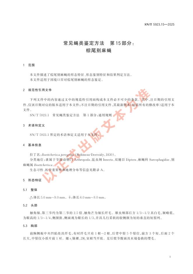 SN/T 5923.15-2025 常见蝇类鉴定方法 第15部分:棕尾别麻蝇