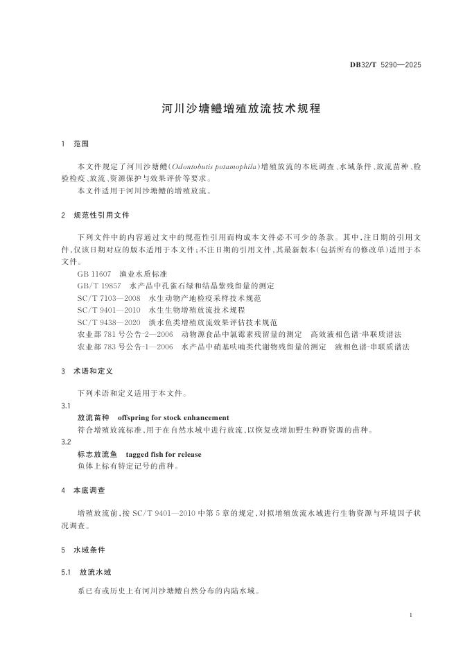 DB32/T 5290-2025 河川沙塘鳢增殖放流技术规程