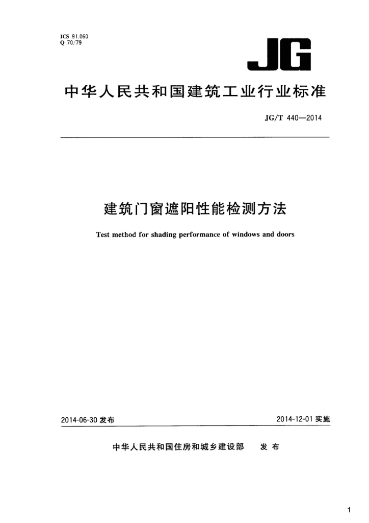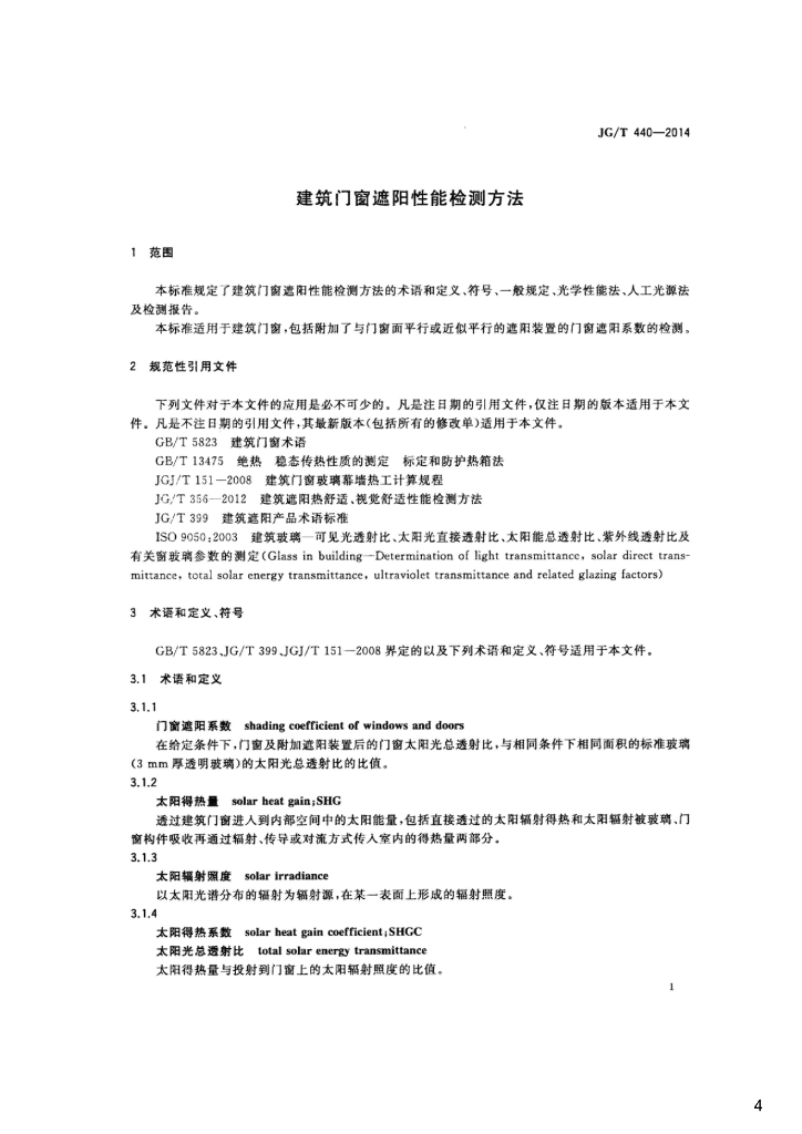 JG/T 440-2014 建筑门窗遮阳性能检测方法