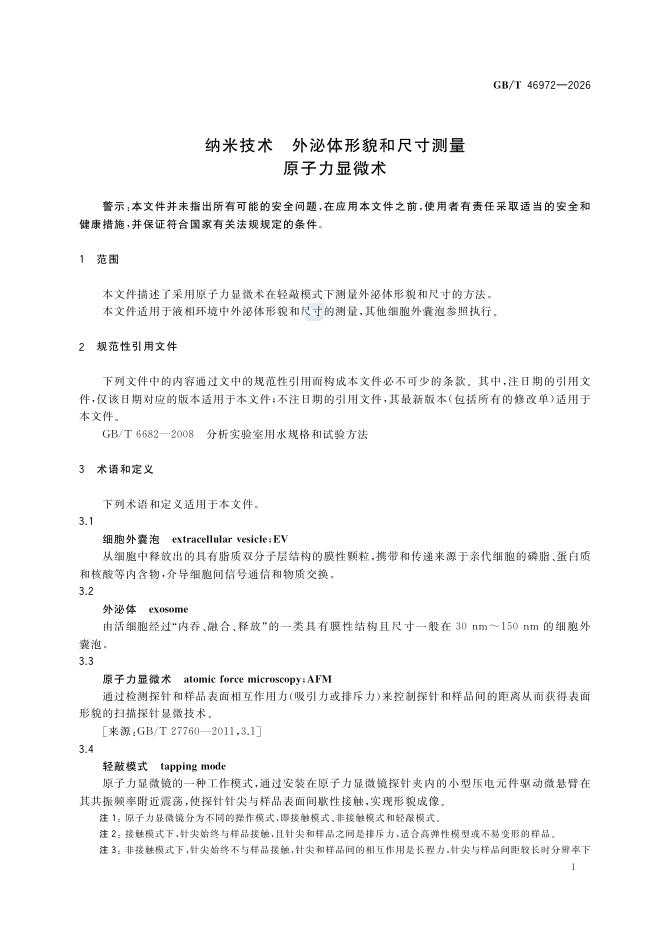 GB/T 46972-2026 纳米技术 外泌体形貌和尺寸测量 原子力显微术