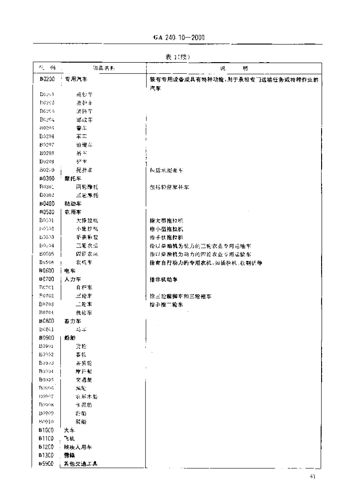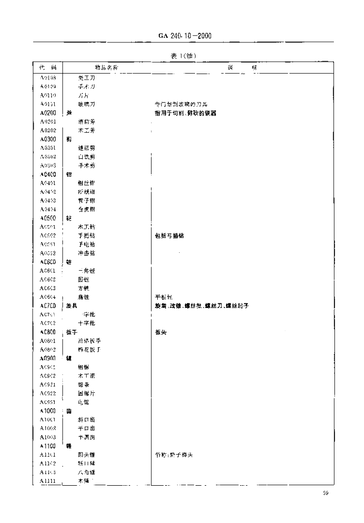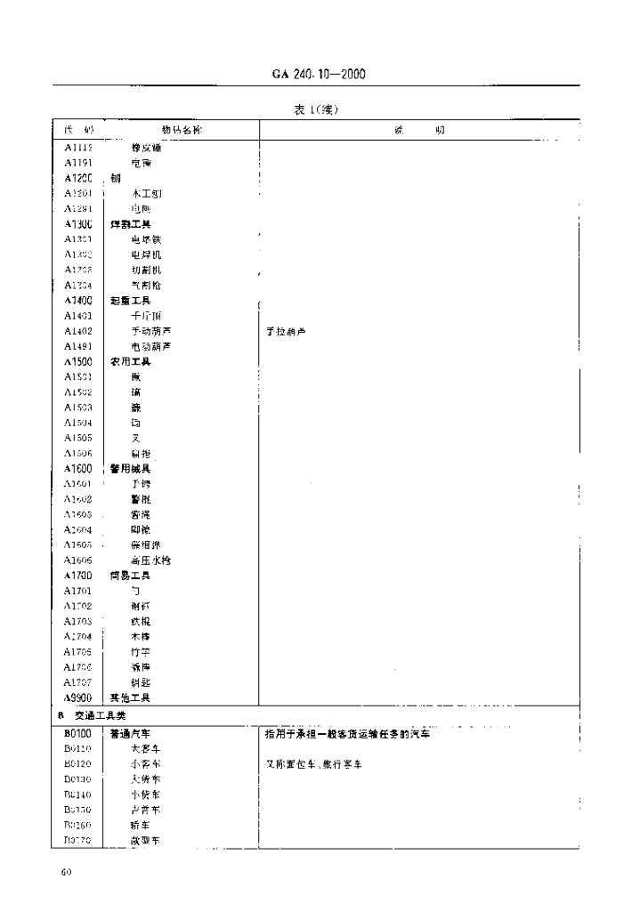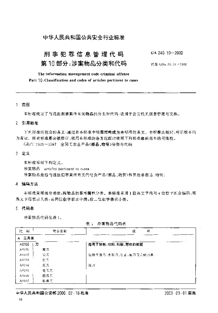 GA 240.10-2000 刑事犯罪信息管理代码 第10部分:涉案物品分类和代码