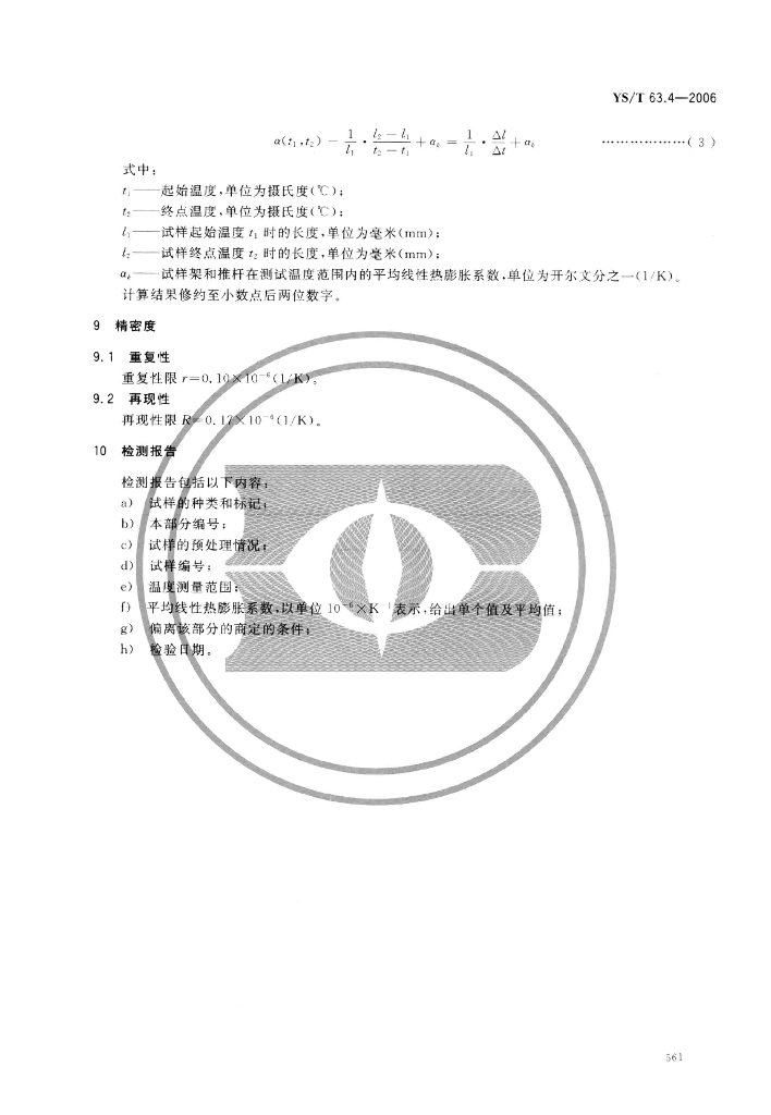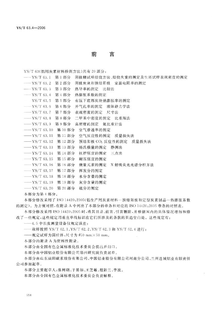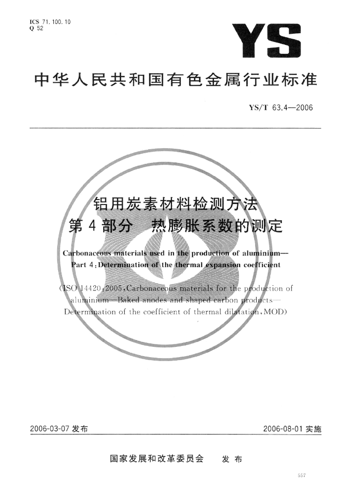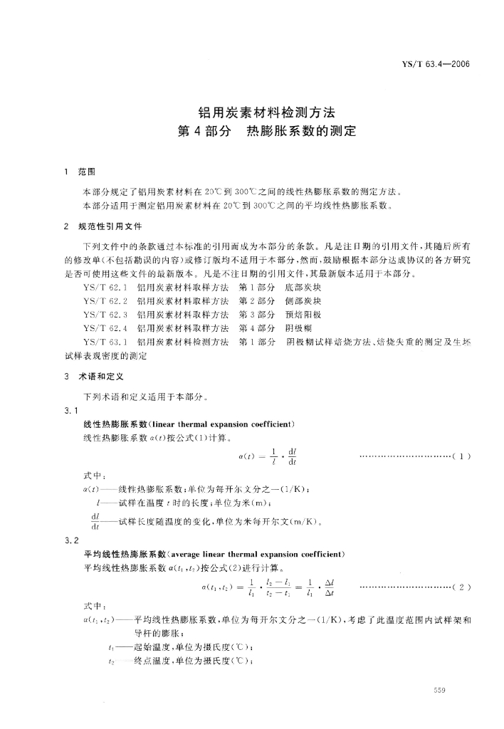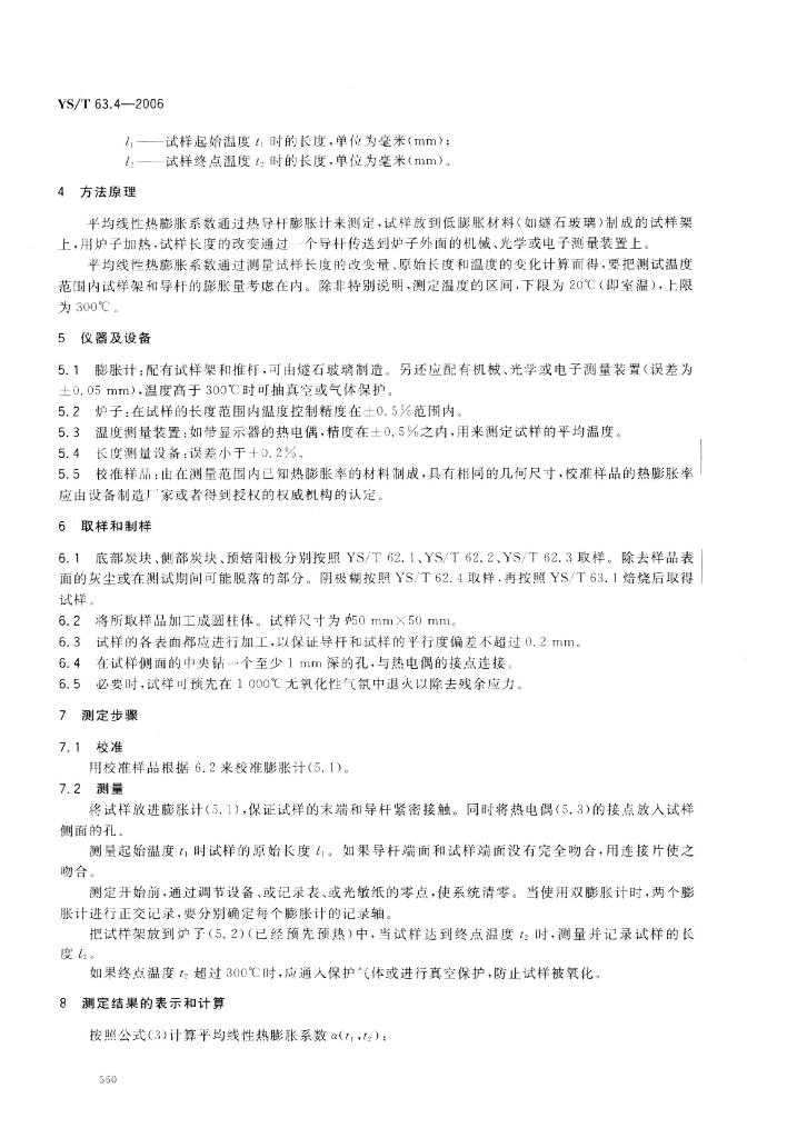 YS/T 63.4-2006 铝用炭素材料检测方法 第4部分:热膨胀系数的测定