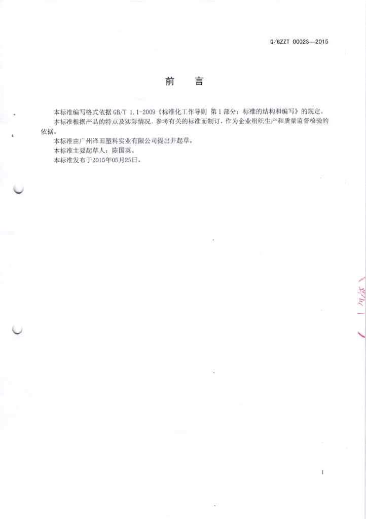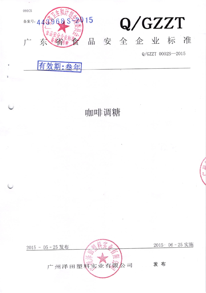 Q/GZZT 0002S-2015 广州泽田塑料实业有限公司 咖啡调糖