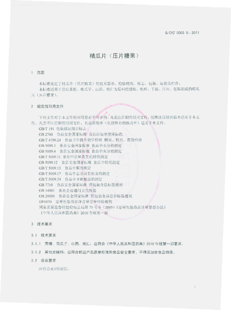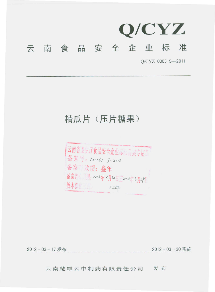 Q/CYZ 0003S-2011 精瓜片(压片糖果)