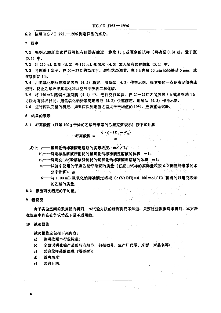 HG/T 2752-1996 未增塑乙酸纤维素游离酸度的测定