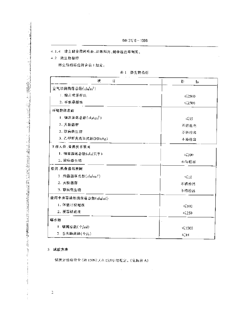 DB31/ 8-1998 托幼机构环境、空气、物体表面卫生标准
