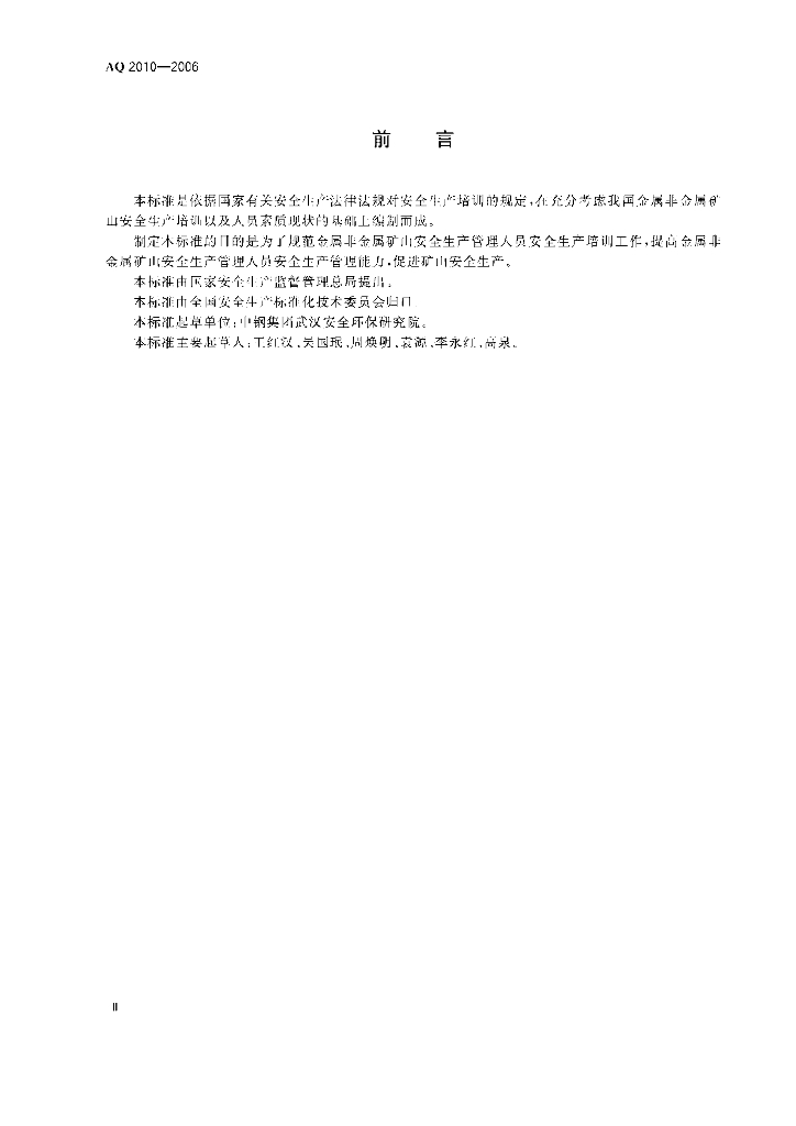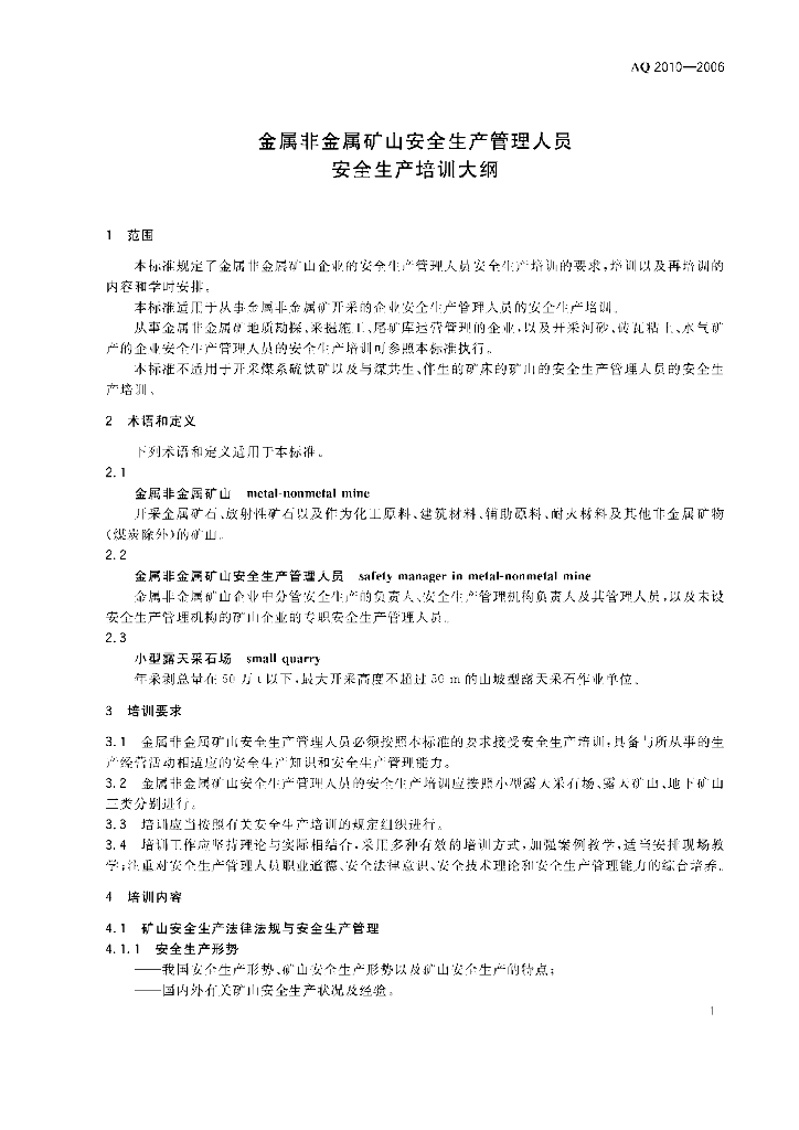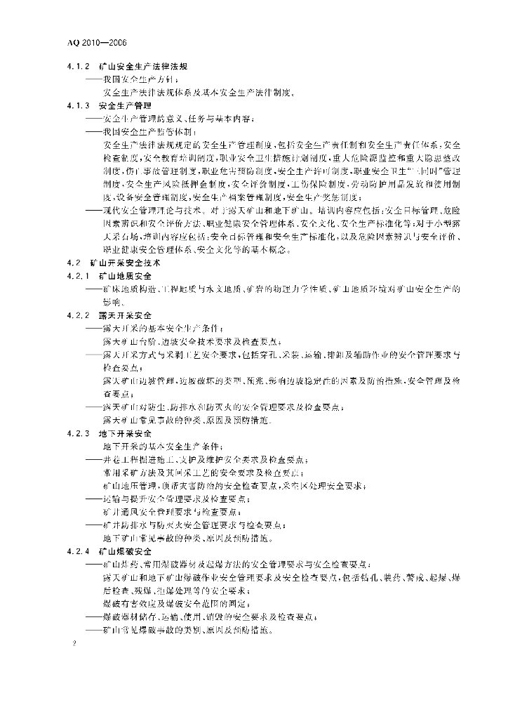 AQ 2010-2006 金属非金属矿山安全生产管理人员安全生产培训大纲