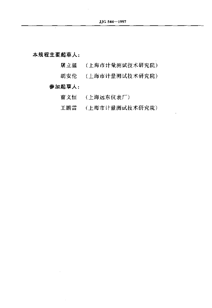 屠立猛(上海市计量测试技术研究院)、胡安伦(上海市计量测试技术研究院)、曹文恒(上海远东仪表厂)、王鹏雷(上海市计量测试技术研究院)