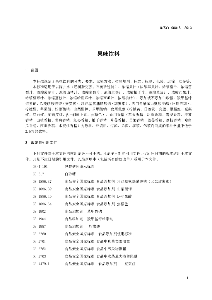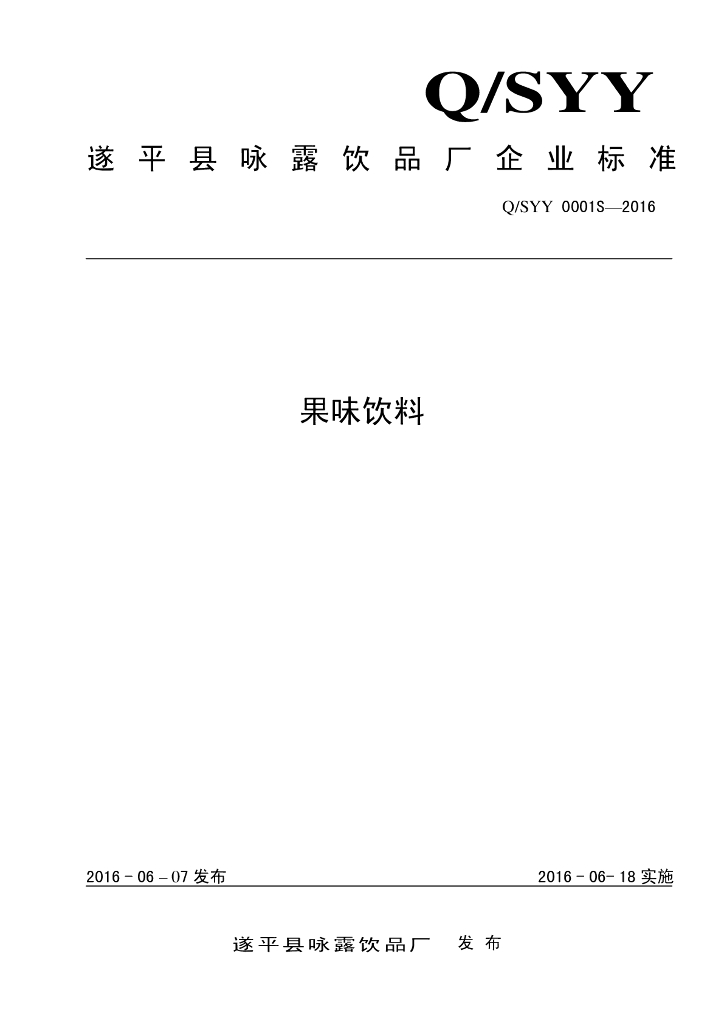 Q/SYY 0001S-2016 遂平县咏露饮品厂 果味饮料