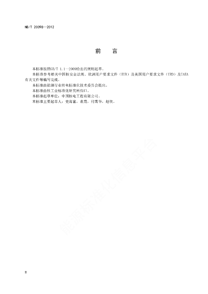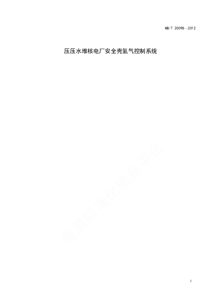 NB/T 20098-2012 压水堆核电厂安全壳氢气控制系统设计准则