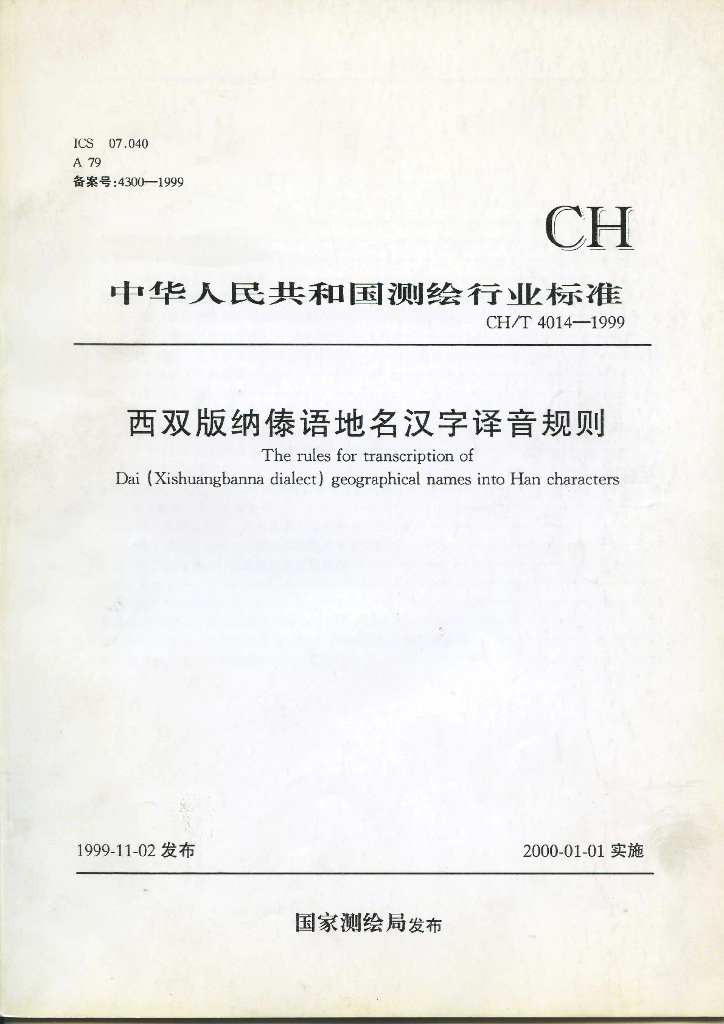 CH/T 4014-1999 西双版纳傣语地名汉字译音规则