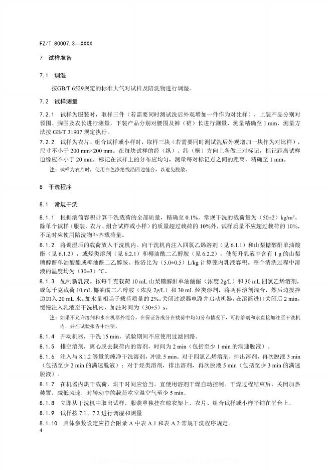 FZ/T 80007.3-2023 使用粘合衬服装耐干洗测试方法