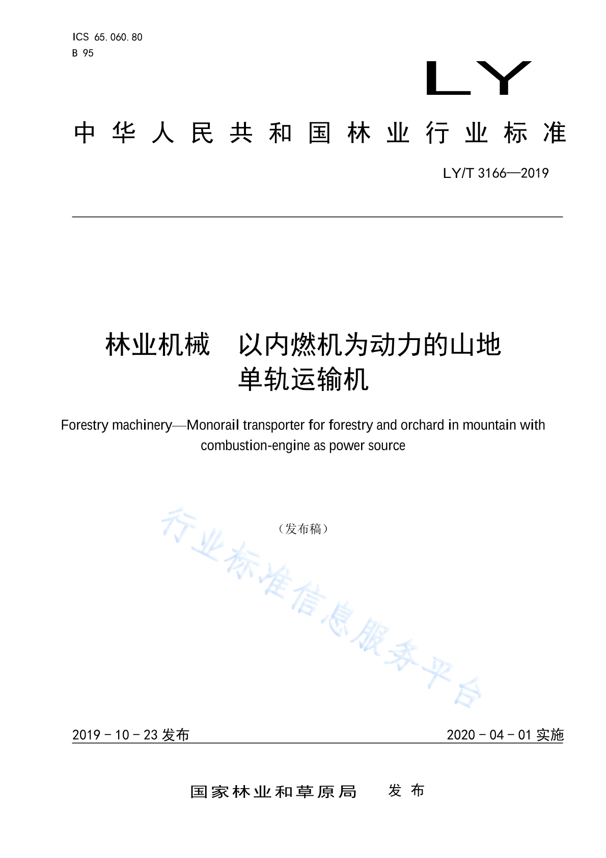 LY/T 3166-2019 林业机械 以内燃机为动力的山地单轨运输机