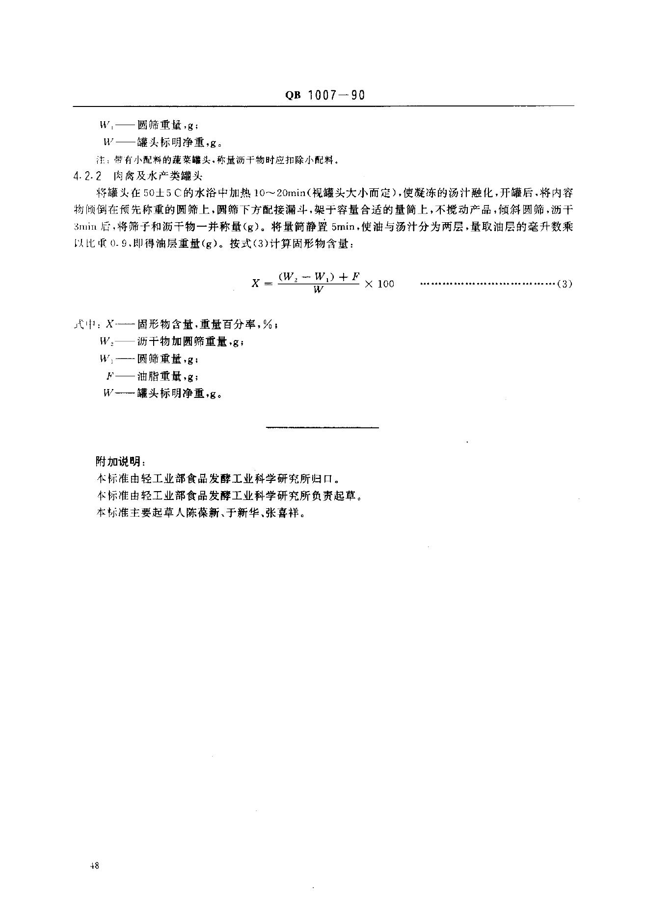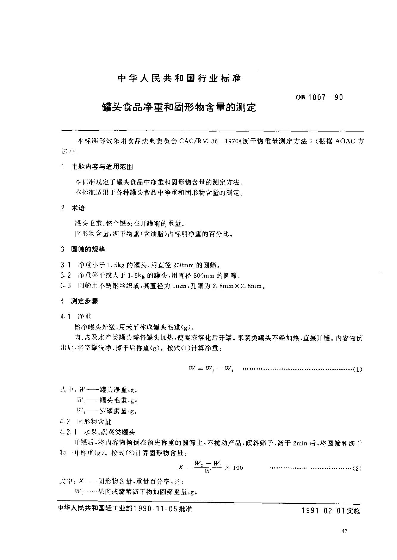 QB 1007-1991 罐头食品净重及固形物含量的测定