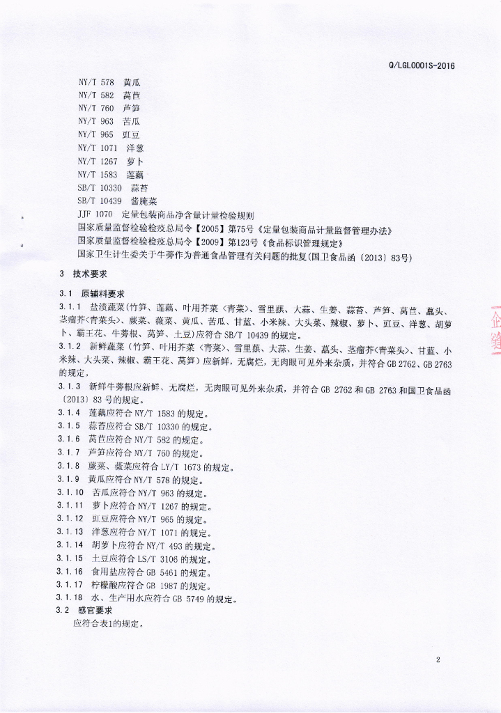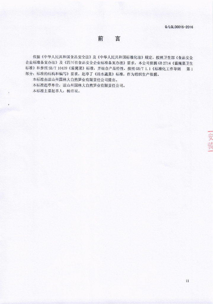 Q/LGL 0001S-2016 凉山州国林大自然笋业有限责任公司 清水蔬菜