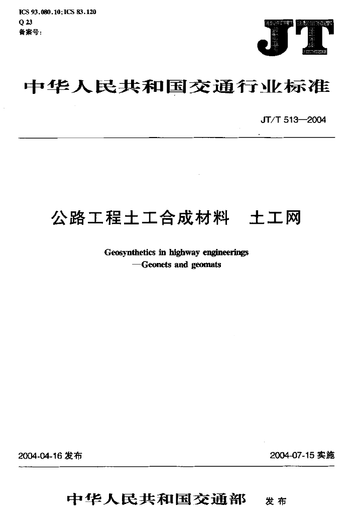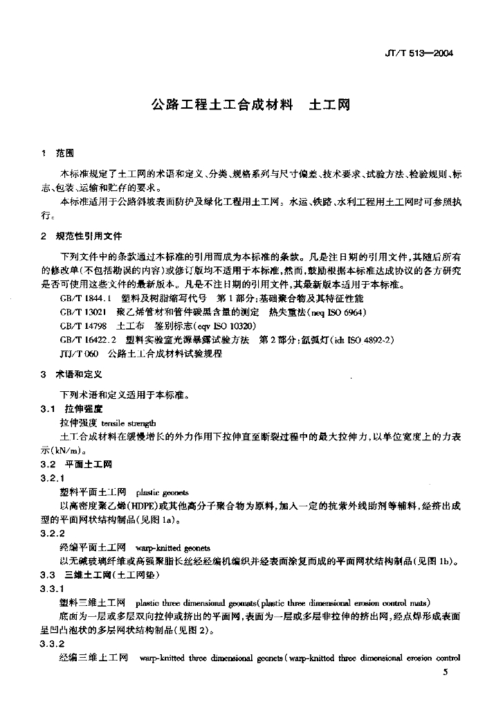 JT/T 513-2004 公路工程土工合成材料土工网