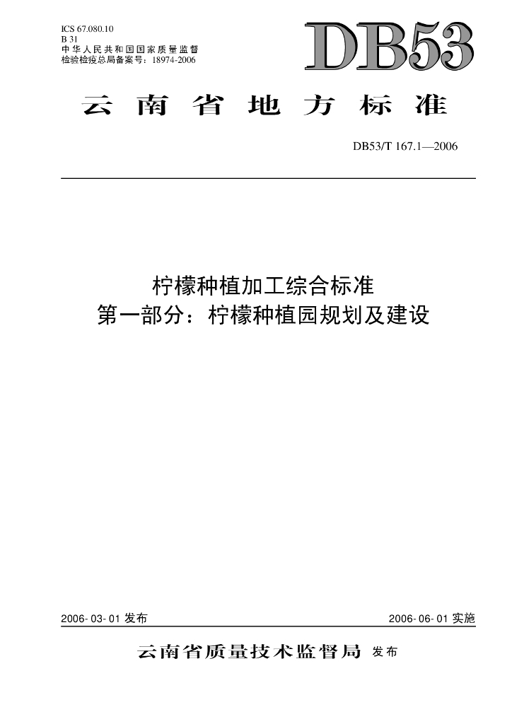 DB53/T 167.1-2006 柠檬种植加工综合标准 第一部分:柠檬种植园规划及建设