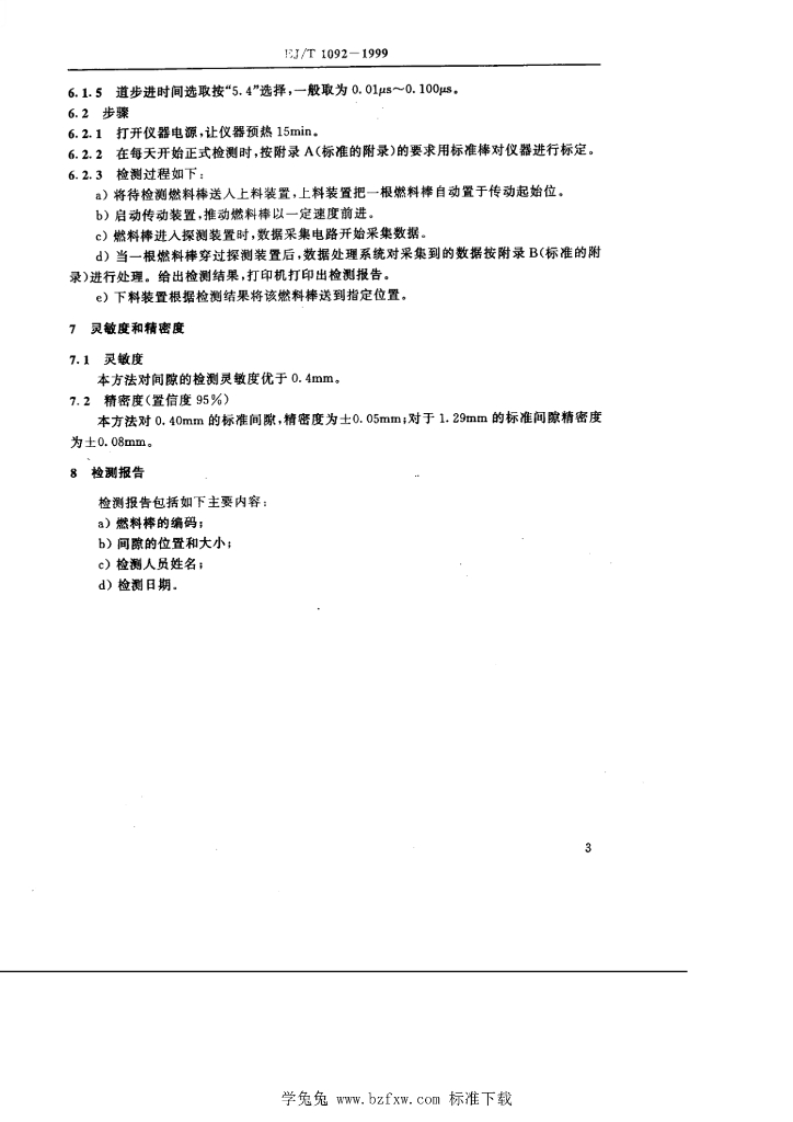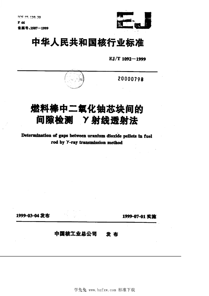 EJ/T 1092-1999 燃料棒中二氧化铀芯块间的间隙检测 γ射线透射法