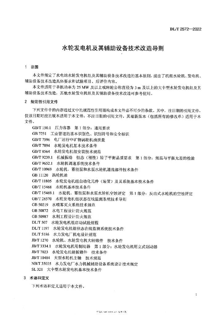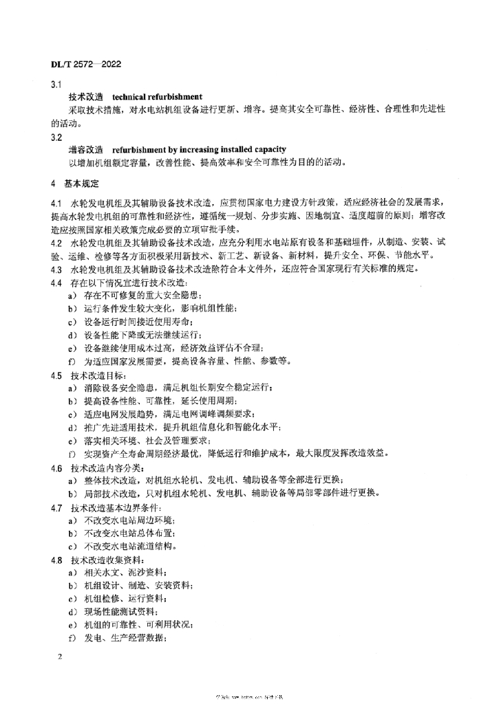 DL/T 2572-2022 水轮发电机及其辅助设备技术改造导则
