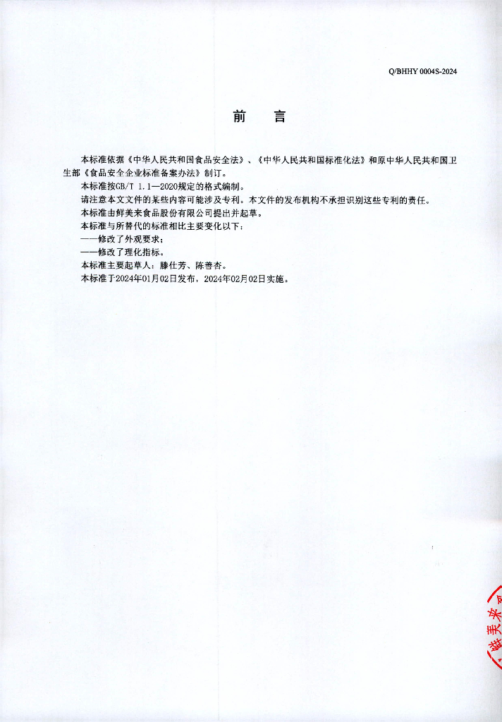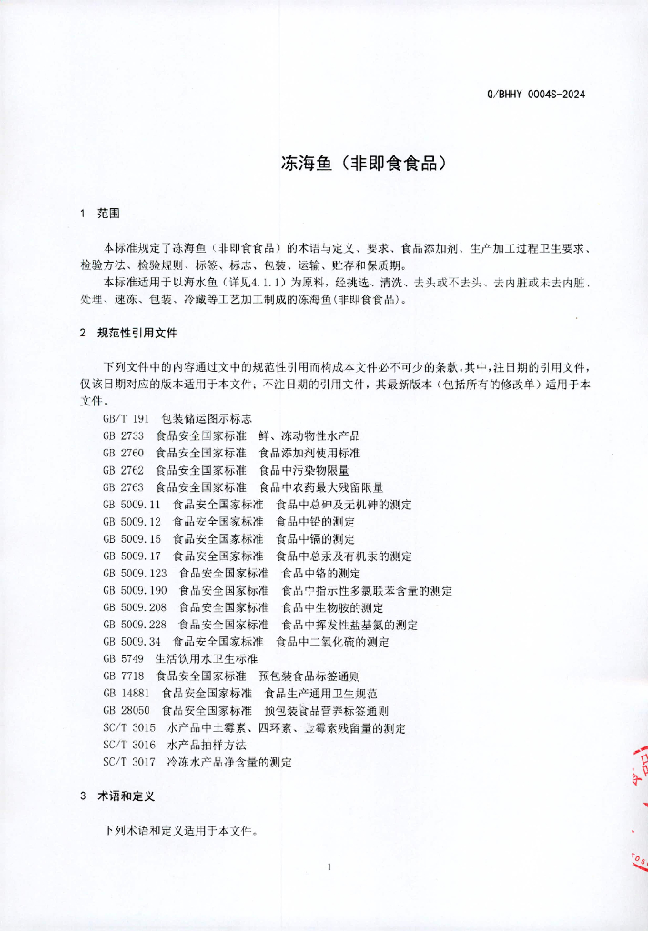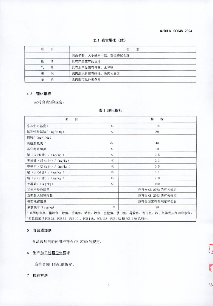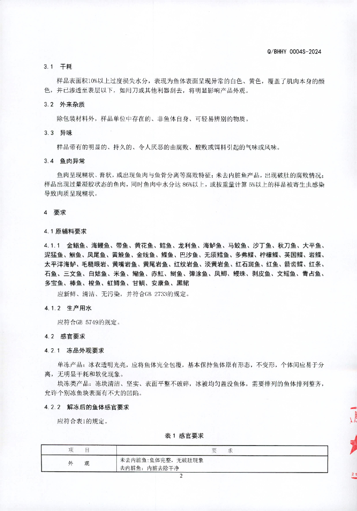 Q/BHHY 0004S-2024 冻海鱼(非即食食品)