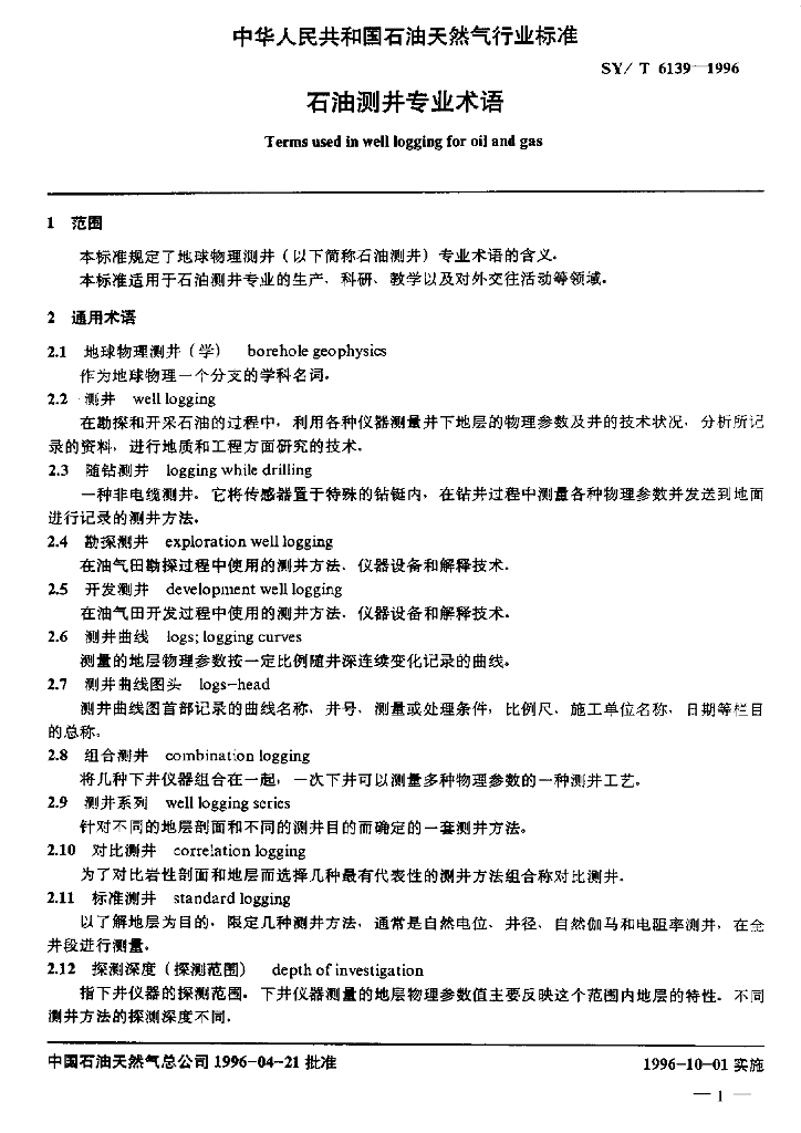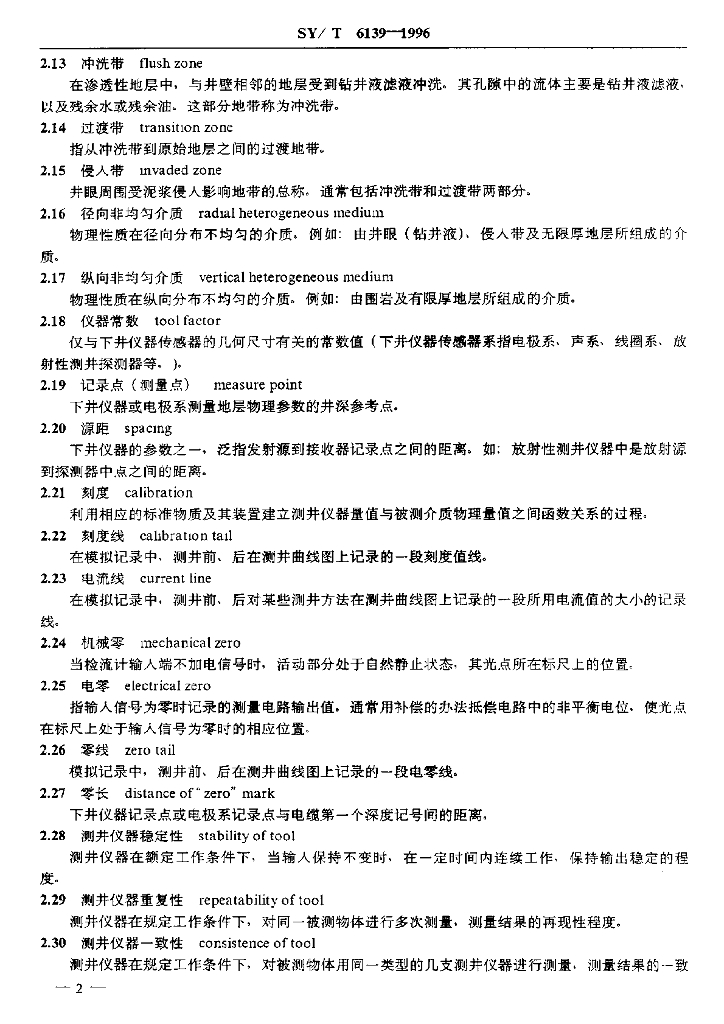 SY/T 6139-1996 石油测井专业术语