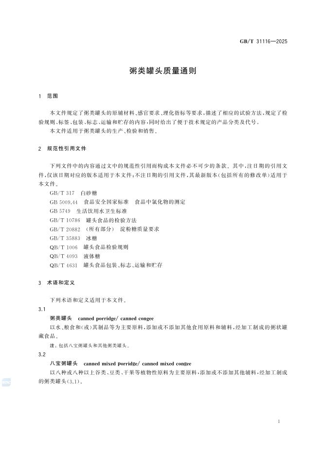 GB/T 31116-2025 粥类罐头质量通则