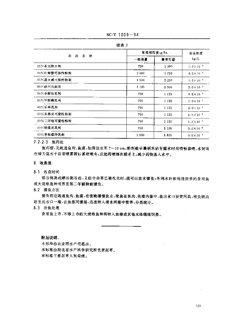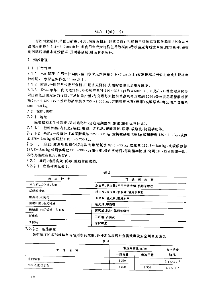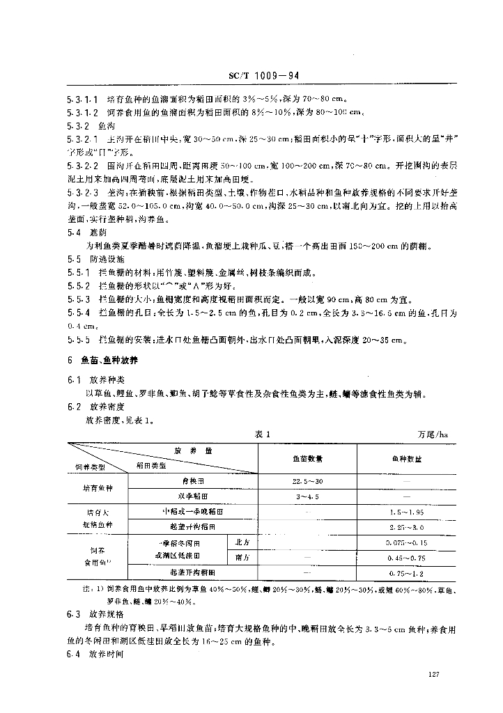 SC/T 1009-1994 稻田养鱼技术要求