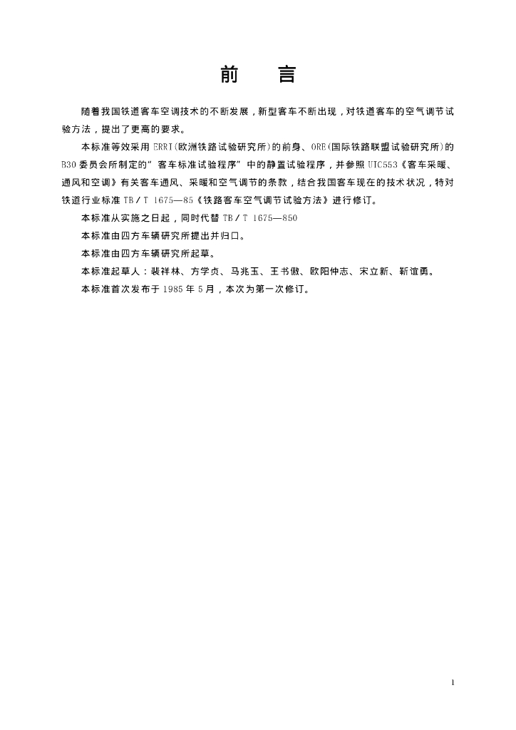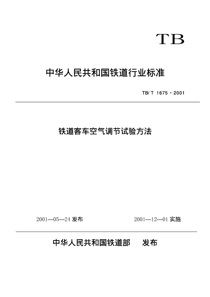 TB/T 1675-2001 铁道客车空气调节试验方法