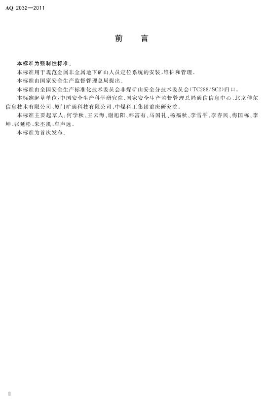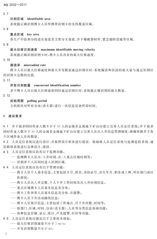 AQ 2032-2011 金属非金属地下矿山人员定位系统建设规范