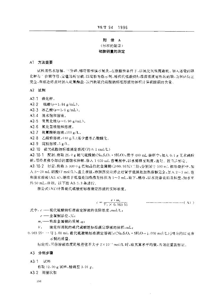 YS/T 94-1996 硫酸铜 冶炼副产品