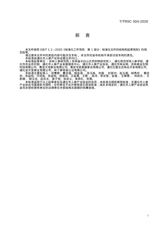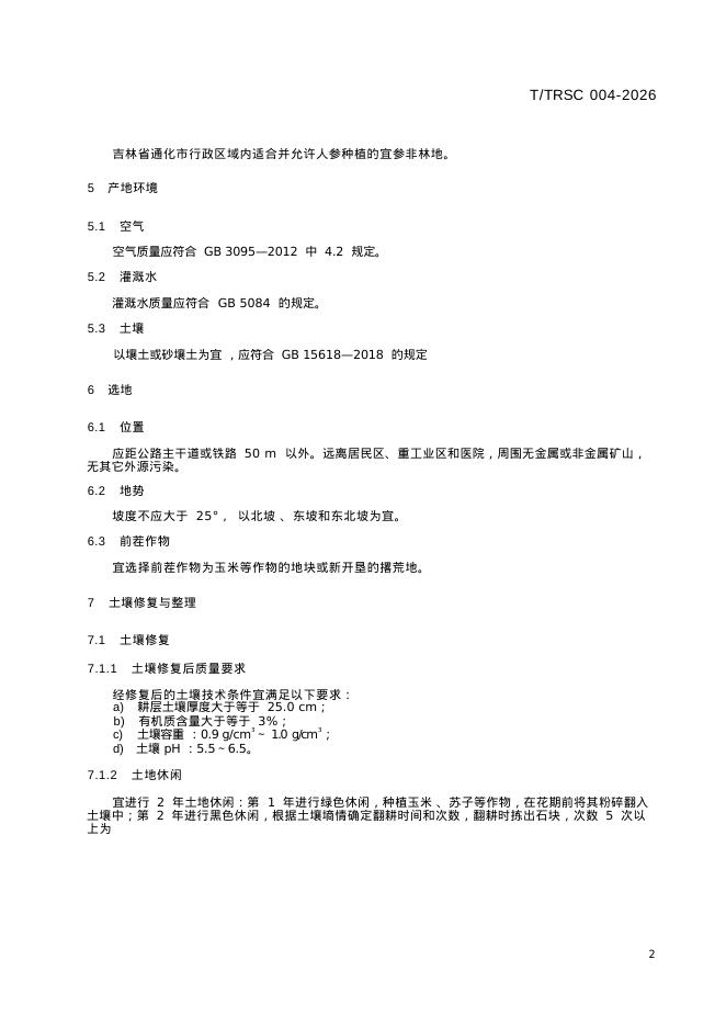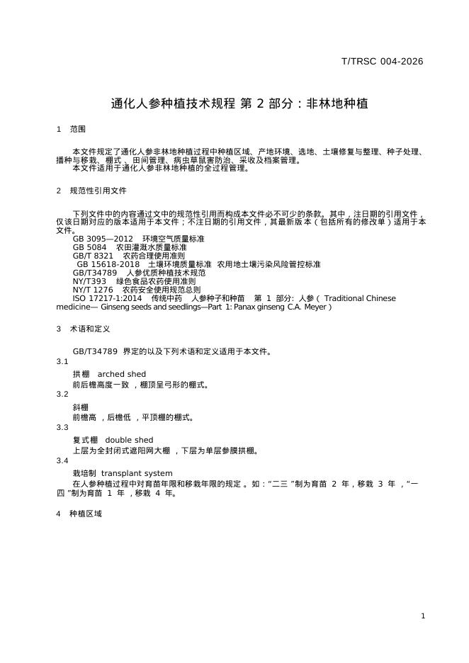 T/TRSC 004-2026 通化人参种植技术规程 第2部分:非林地种植