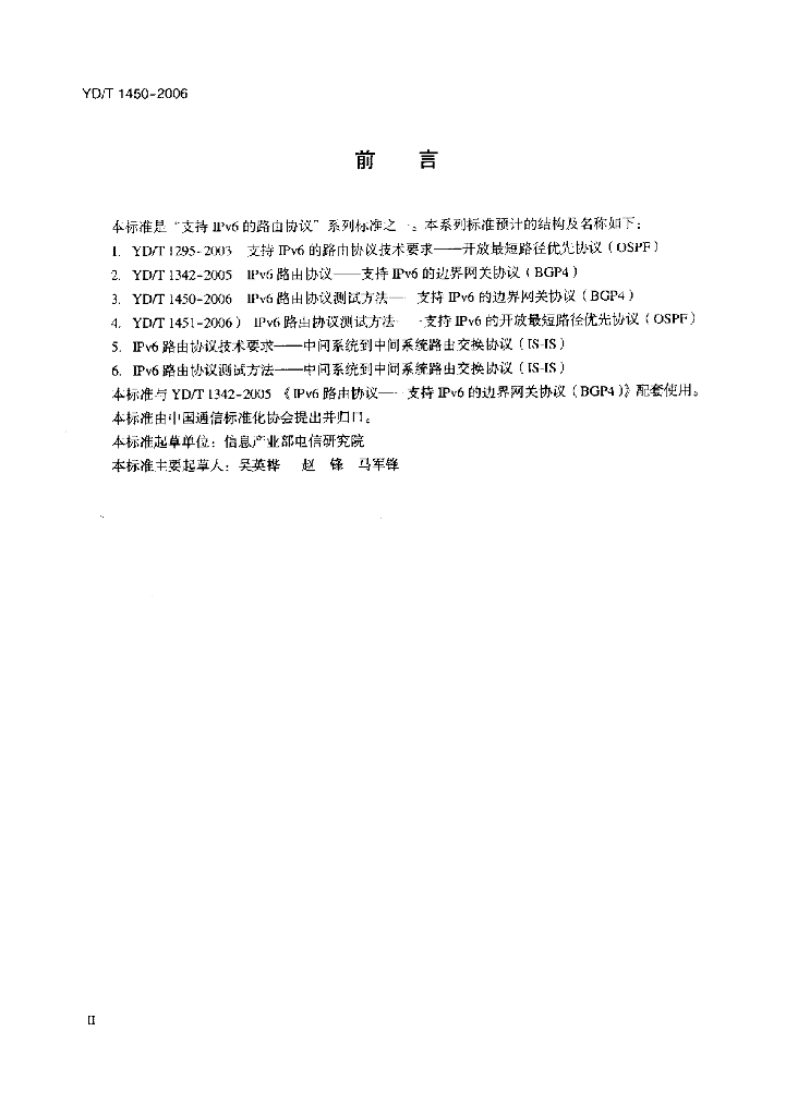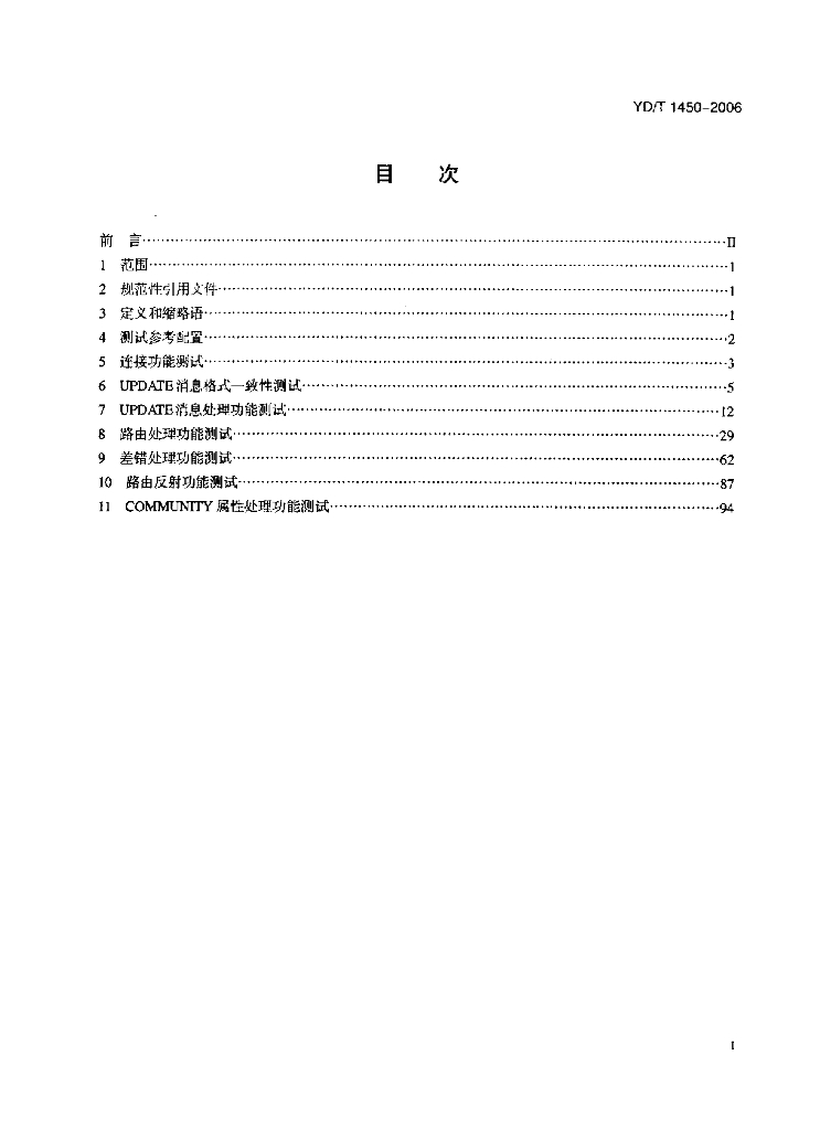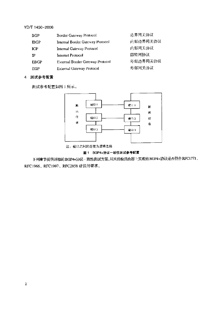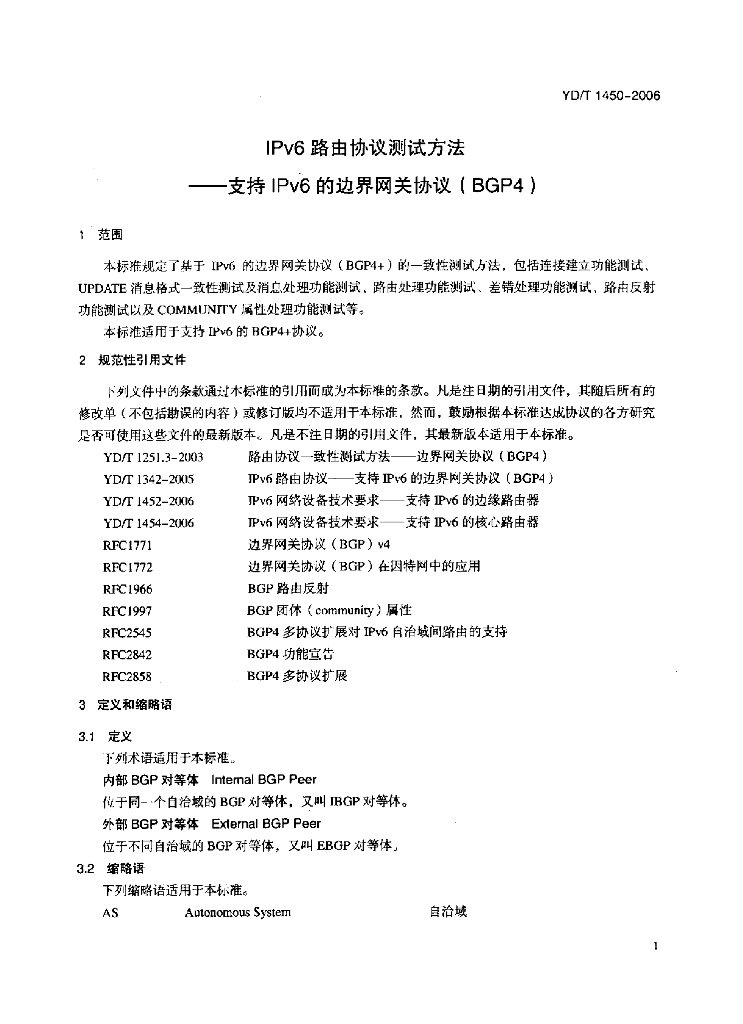 YD/T 1450-2006 IPv6 路由协议测试方法——支持 IPv6 的边界网关协议(BGP4)