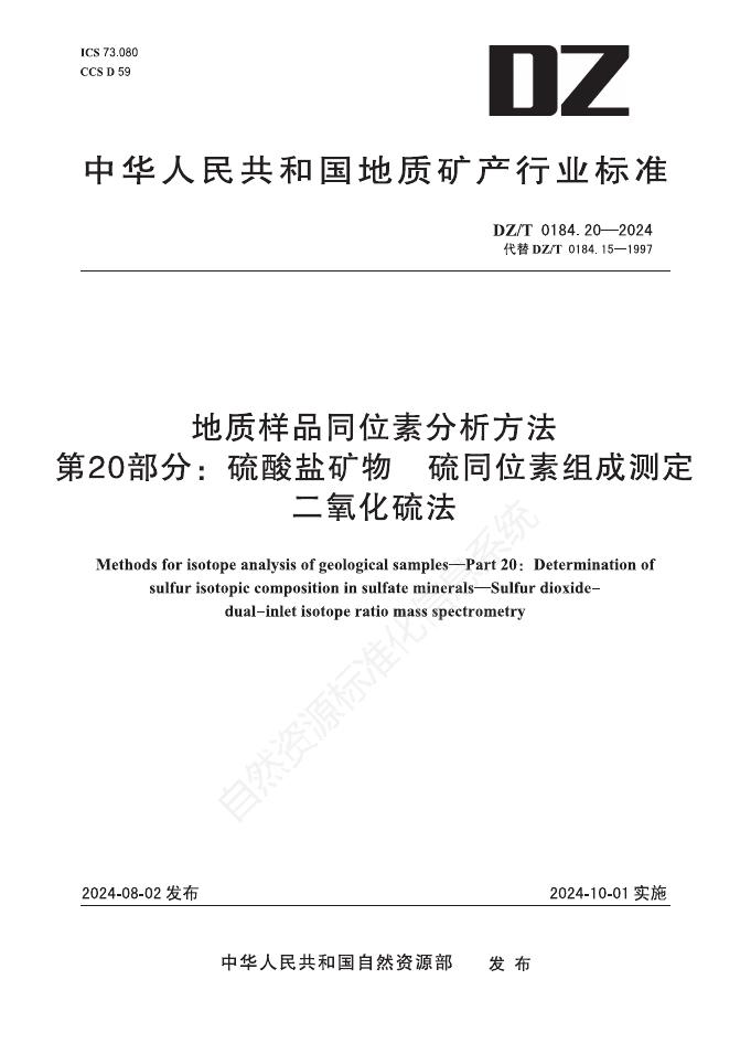 DZ/T 0184.20-2024 地质样品同位素分析方法 第20部分:硫酸盐矿物 硫同位素组成测定 二氧化硫法