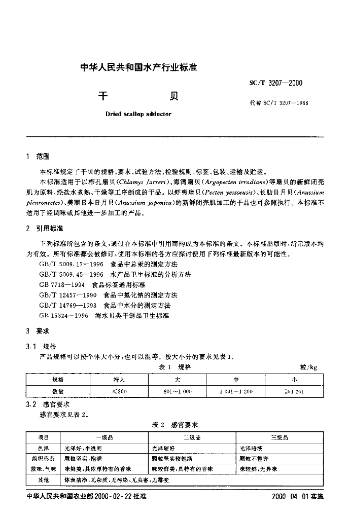 SC/T 3207-2000 干贝