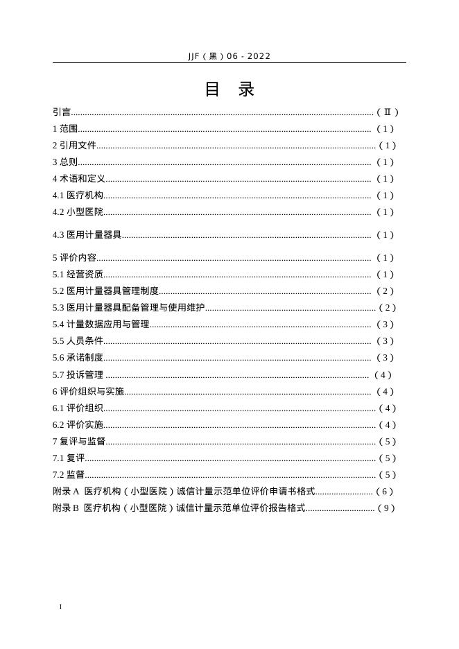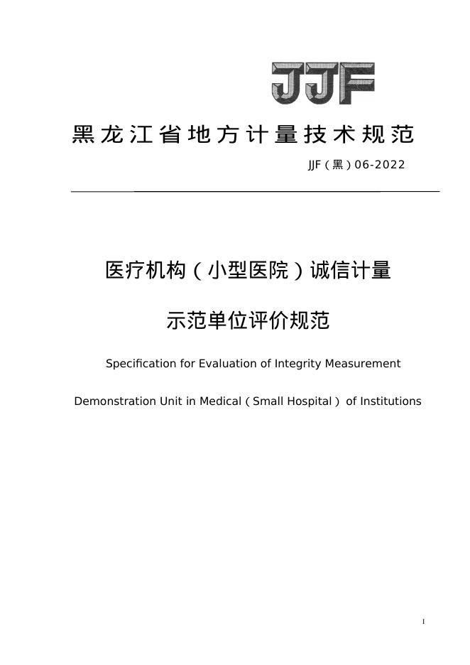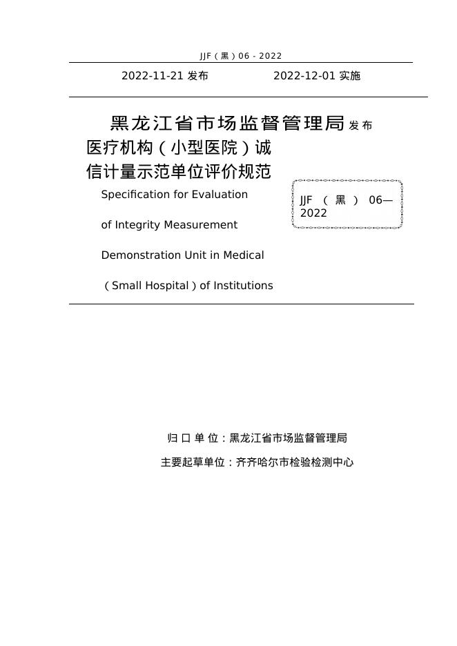 JJF(黑)06-2022 医疗机构(小型医院)诚信计量示范单位评价规范