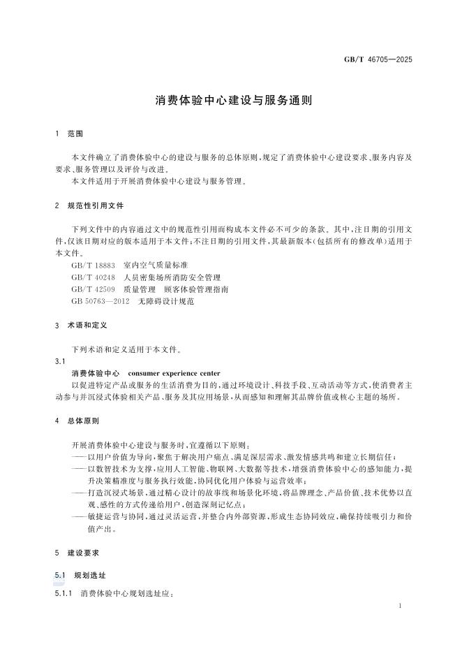GB/T 46705-2025 消费体验中心建设与服务通则