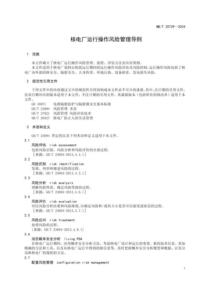 NB/T 20729-2024 核电厂运行操作风险管理导则