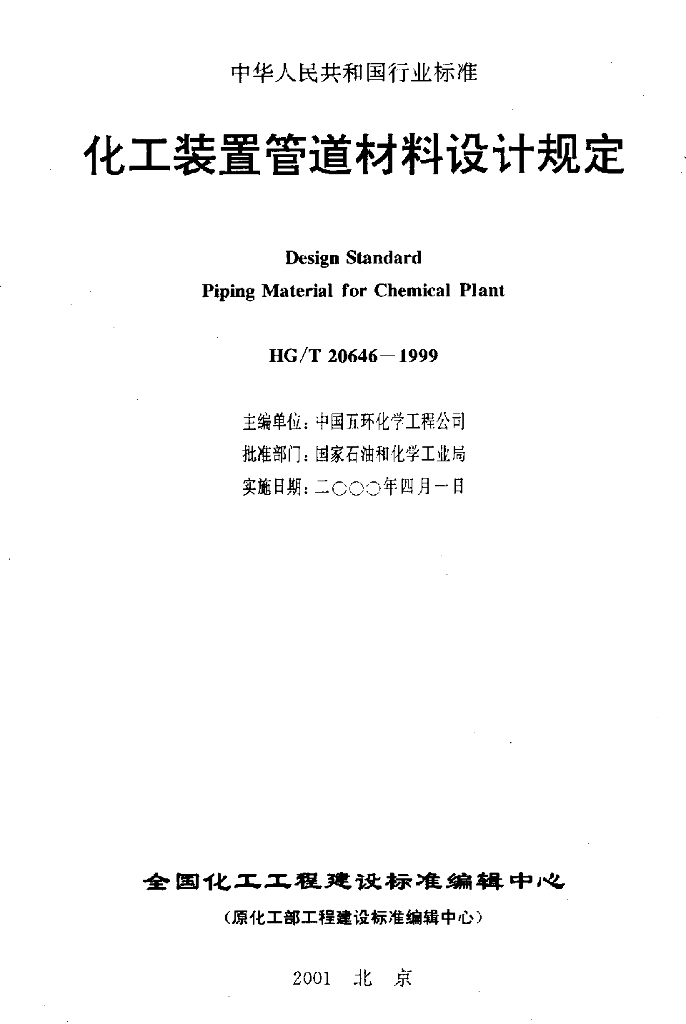 HG/T 20646-1999 化工装置管道材料设计规定